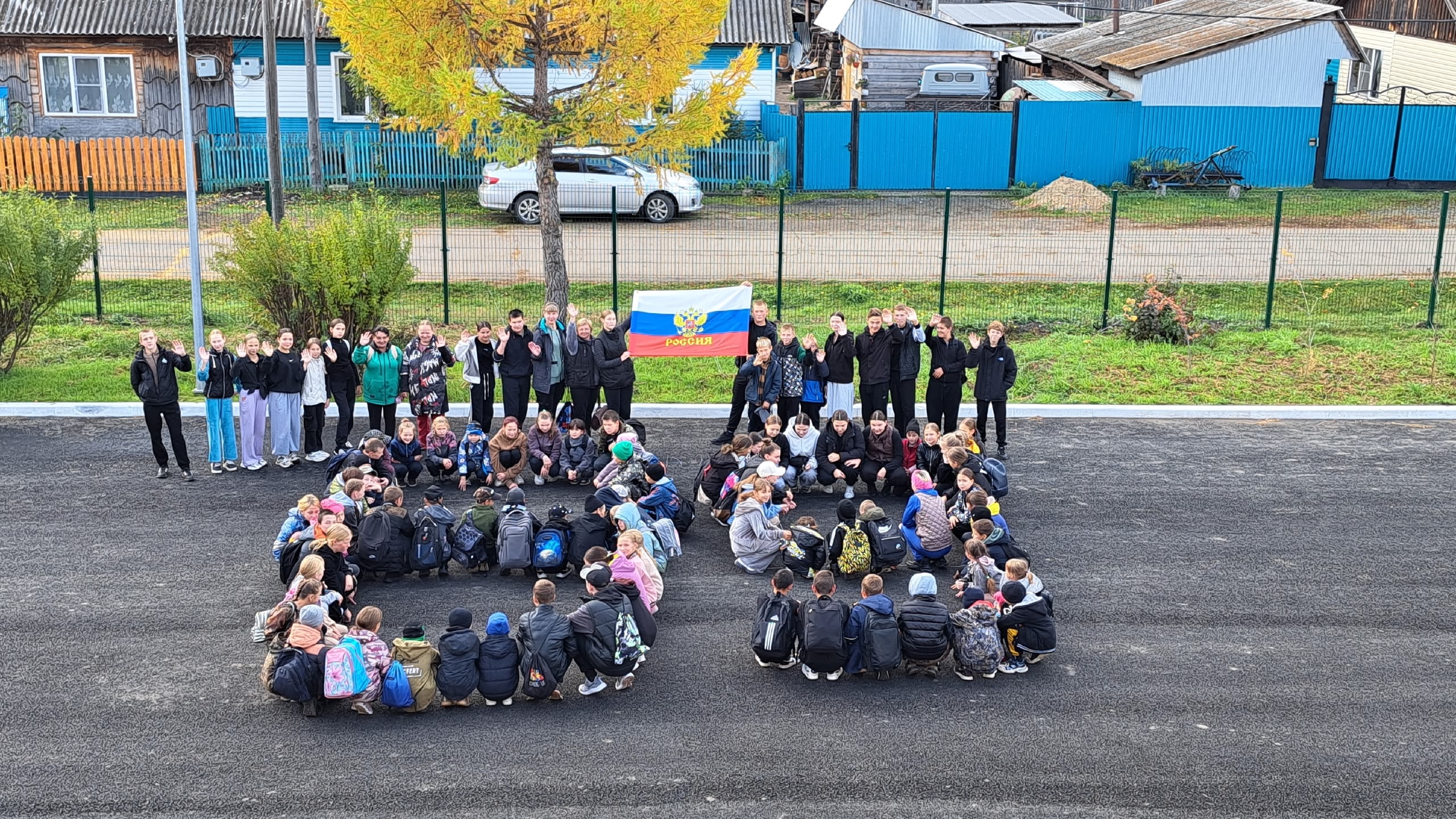 Участниками флэшмоба стали учителя, ученики,родители МОУ "ГАДАЛЕЙСКАЯ СОШ" . Все дружно выстроились в цифру 89 и подняли флаг.